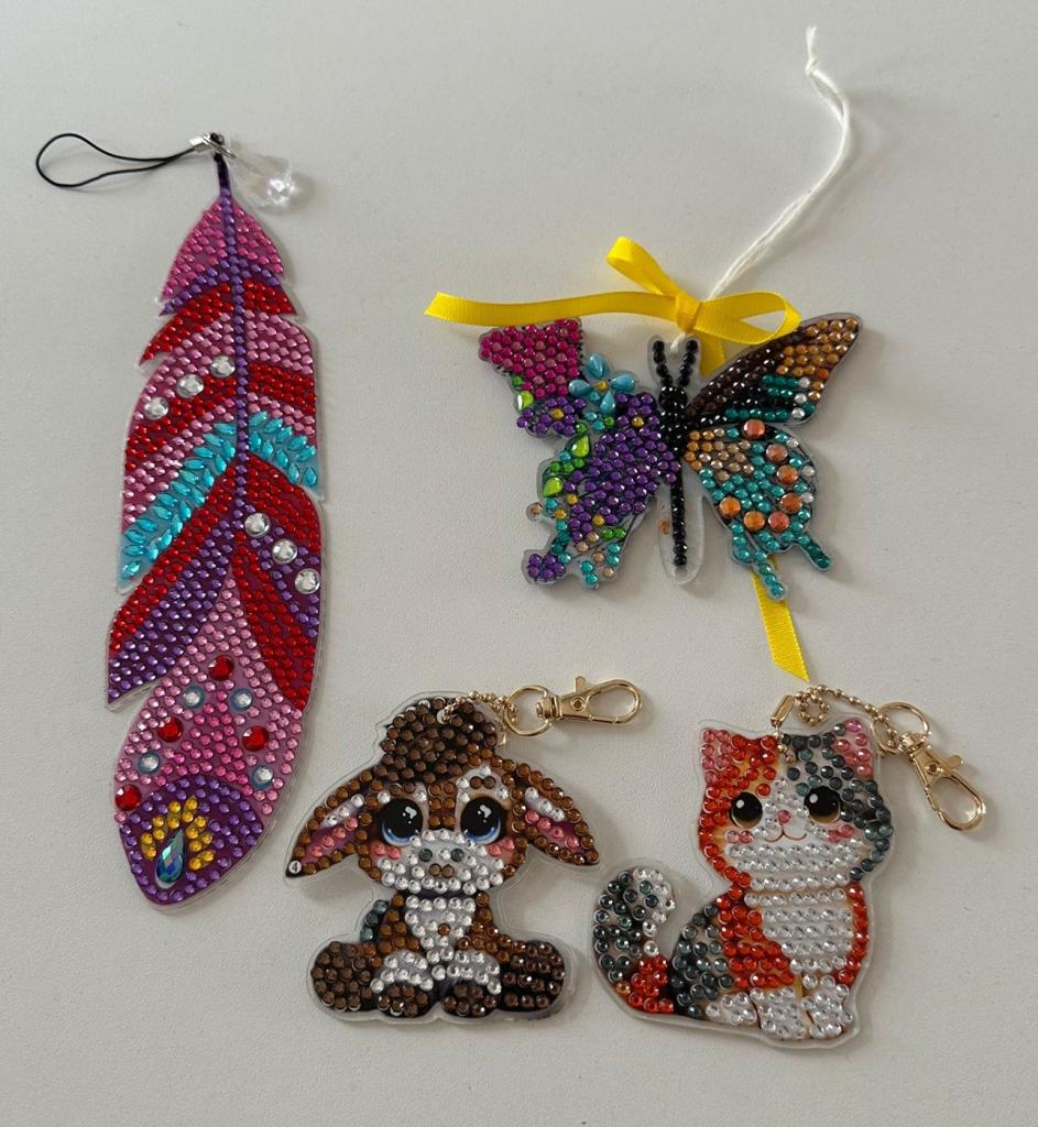 Tuto činnost přímo milujeme. A chcete vědět, jak se to dělá? Na samolepící šablonu, kterou si vybereme, postupně speciálním perem vkládáme drobné korálky ve tvaru diamantů. Barvy korálků jsou na šabloně označené čísly nebo písmeny. Proto se při práci musíme soustředit jak na samotné tvoření, tak na správně zvolenou barvu. Výsledkem jsou krásné obrázky, které opravdu stojí za to.