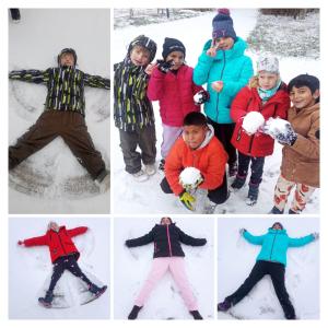 Když se školní zahrada poprvé pokryla bílým sněhem, děti z III. A neváhaly ani chvilku a hned vyrazily ven.
