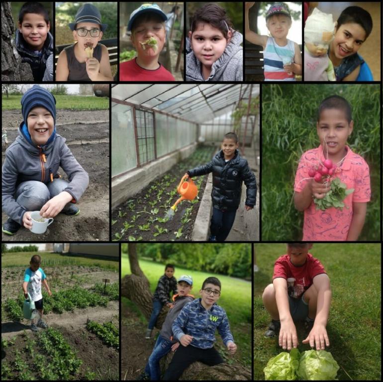 Sklízíme tyto druhy ovoce: jablka a hrušky, jeřáb, maliny a rybíz a v městském parku dřín. Sázíme také brambory, cibuli a česnek. Tyto suroviny používáme na vaření ve cvičné kuchyni.